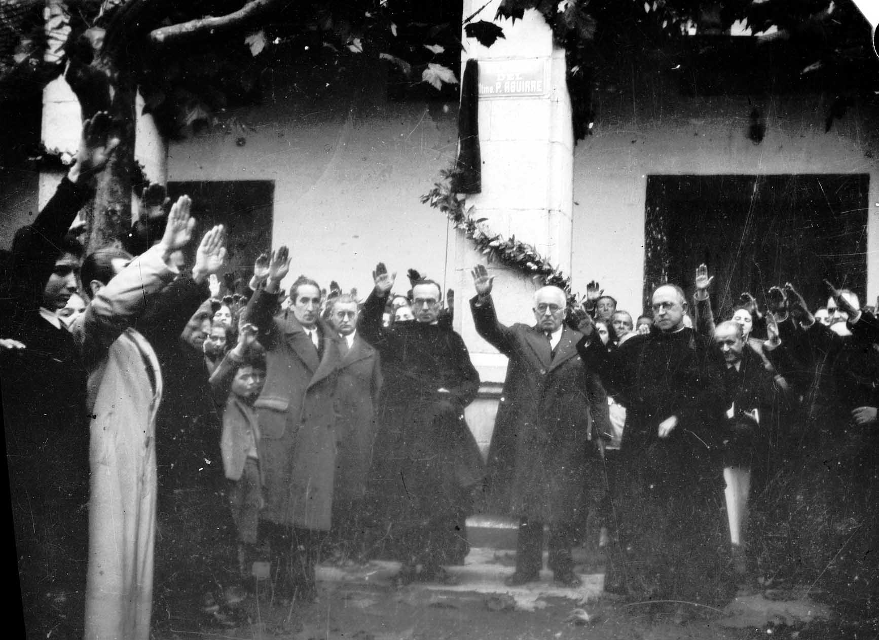 1941. urtean inauguruta zuten Aita Aguirre Plaza. Aita Aguirre hil zen urtean bertan jarri zioten plaza izena, hemen orduko argazkia, bikario, parroko, herritar eta Alkatea eskua altxatuta. Bertan azaltzen dira Ezk-Esk: Juanito Iriondo, Demetrio Serrano atzean, Bikarioa, Teodoro Alkorta Alkatea eta Don Ramon Ormaetxea Parrokoa.