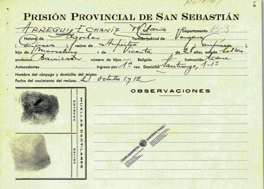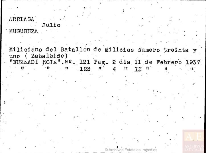 992 Milizianoa, EAJko afiliatua Diziplina Batalloiko kidea. Gerra-kontseiluan auzipetua: Biziarteko kartzelara kondenatua.