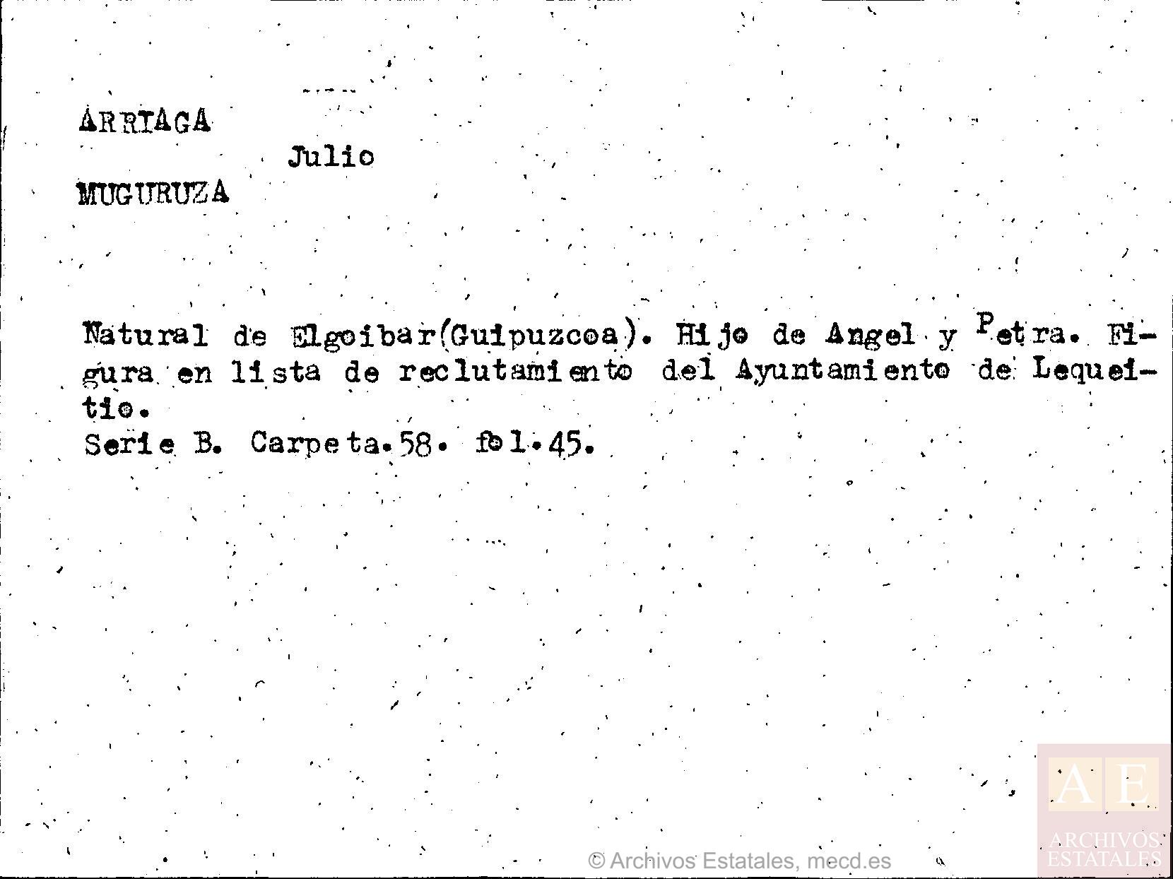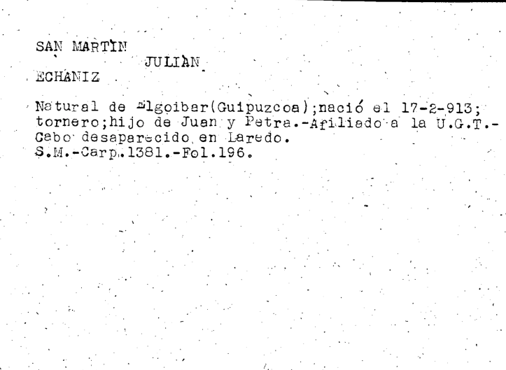 21 años, natural de eibar, residente en Elgoibar, Banda de milicias Vascas de Gernika. Sevillan eta Zaragoran kontzentrazio eremuetan. Gero elgoibarrera itzuli zen.